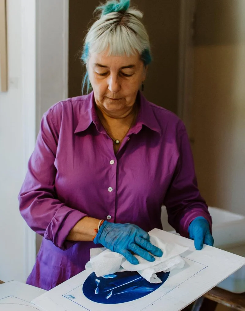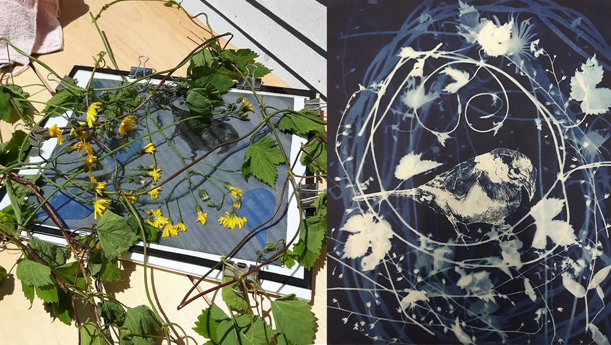 Over two days, participants will create a series of permanent Cyanotype prints on paper or cloth with locally sourced plants, 3D objects, translucent materials and drawings on acetate that brings to light a theme of their choice. Since this technique can be worked into any realm of mixed media, we will look at combining cyanotypes with collage, drawing,and any form of painting.