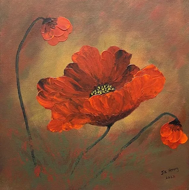 "Poppies Aglow" - Acrylic on Gallery Wrapped Canvas [12"x12"]