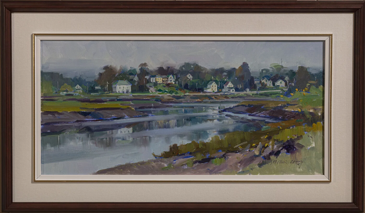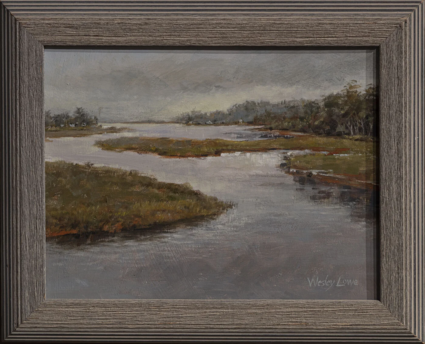 Wesley Lowe "The Estuary" oil on board, 14 x 17 1/2"