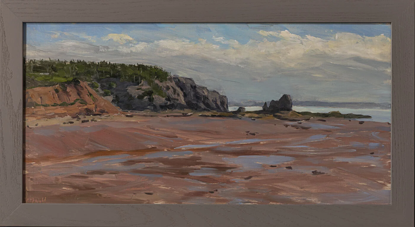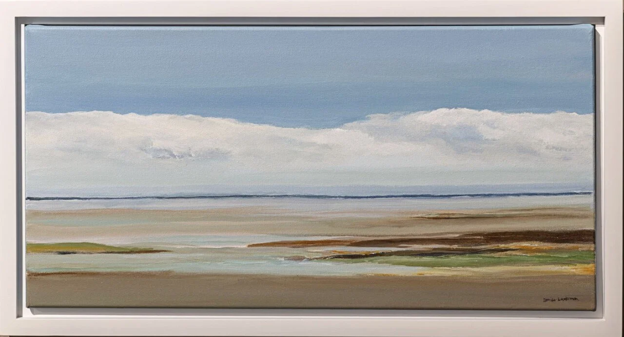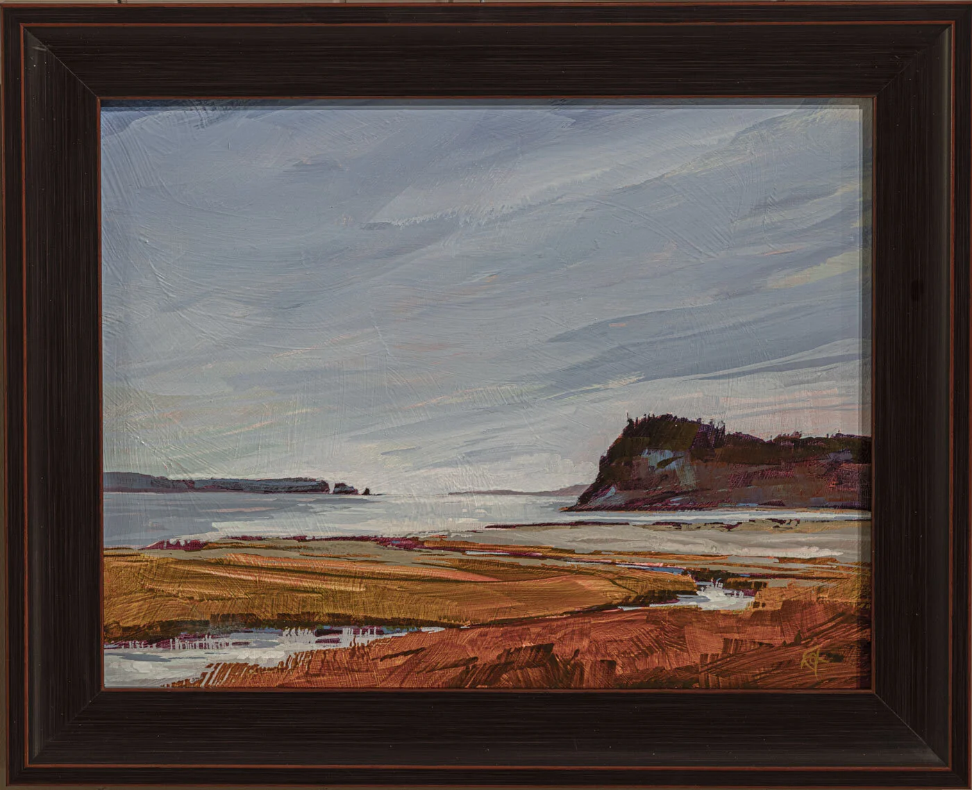 Sharon Fox Cranston "Cape Split from East Bay" acrylic on board, 12 x 14" https://www.instagram.com/sfoxcranston/ https://www.cranstongallery.com