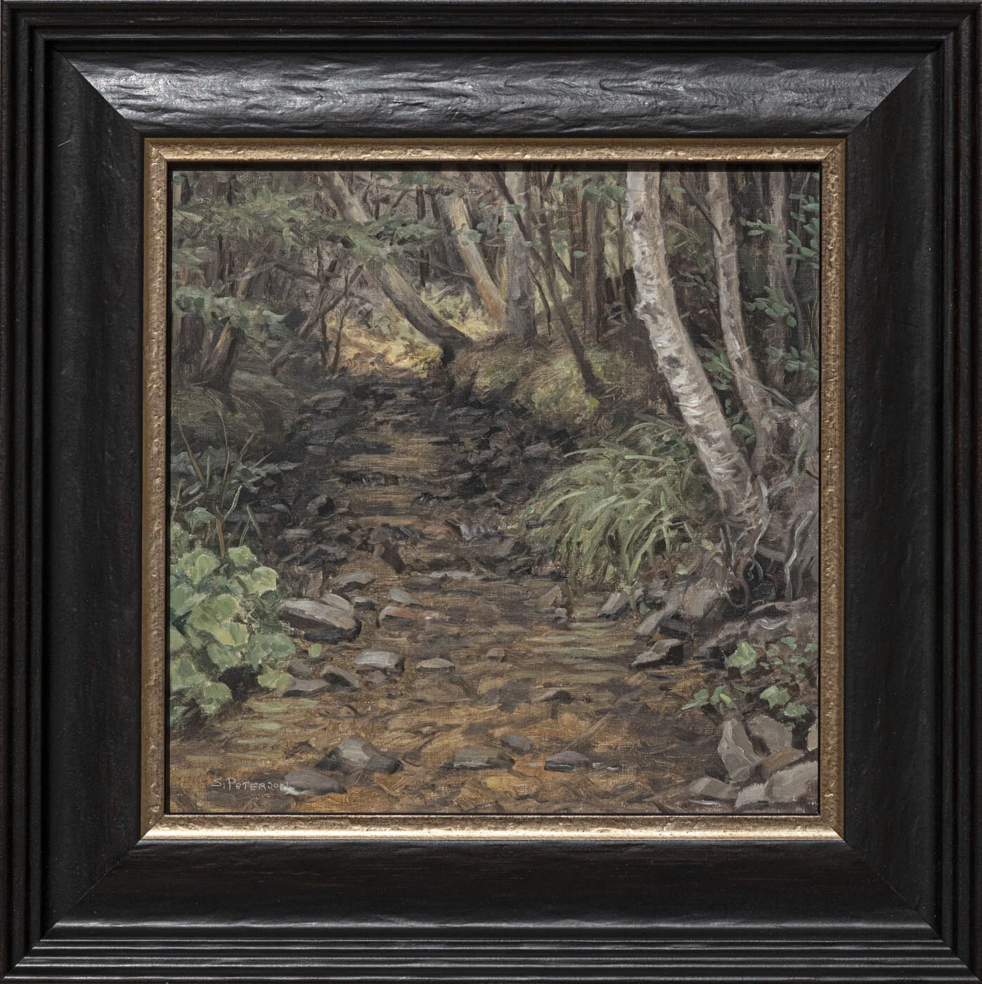 Susan Paterson "Low Brook" oil on panel, 14 3/8 x 14 3/8"