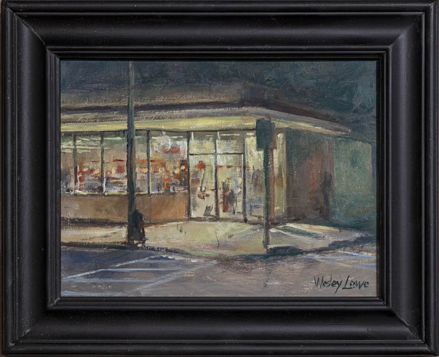 Wesley Lowe "Pharmacy Noctournal" oil on board 18 x 11 1/2 "