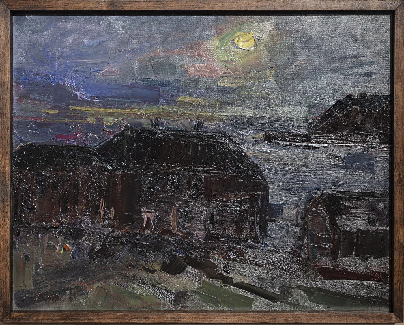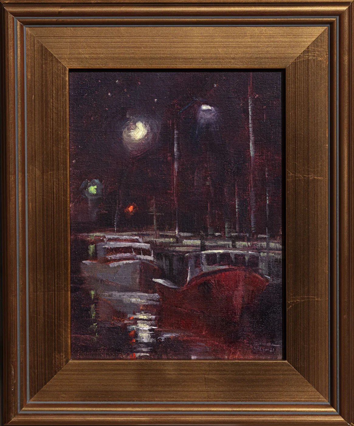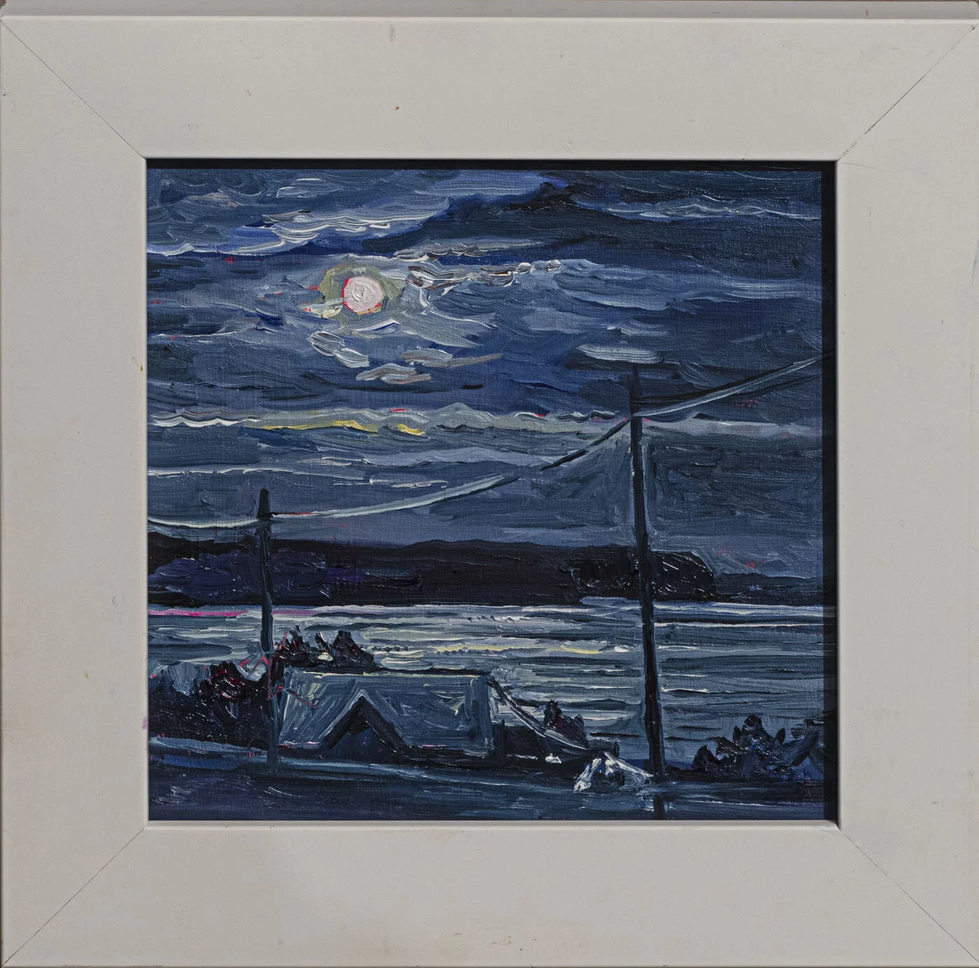[SOLD] Simone Ritter "(Almost) Full Moon at Parrsboro Harbour", oil on linen 13 x 16"