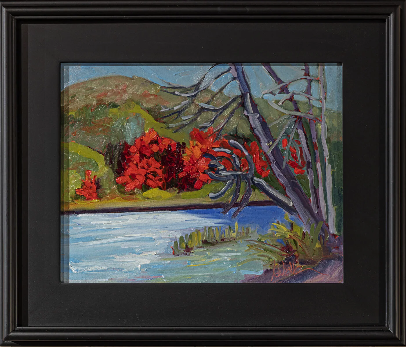 Anne Wedler "First Reds of Fall" oil on birch, 19 1/2 x 14"