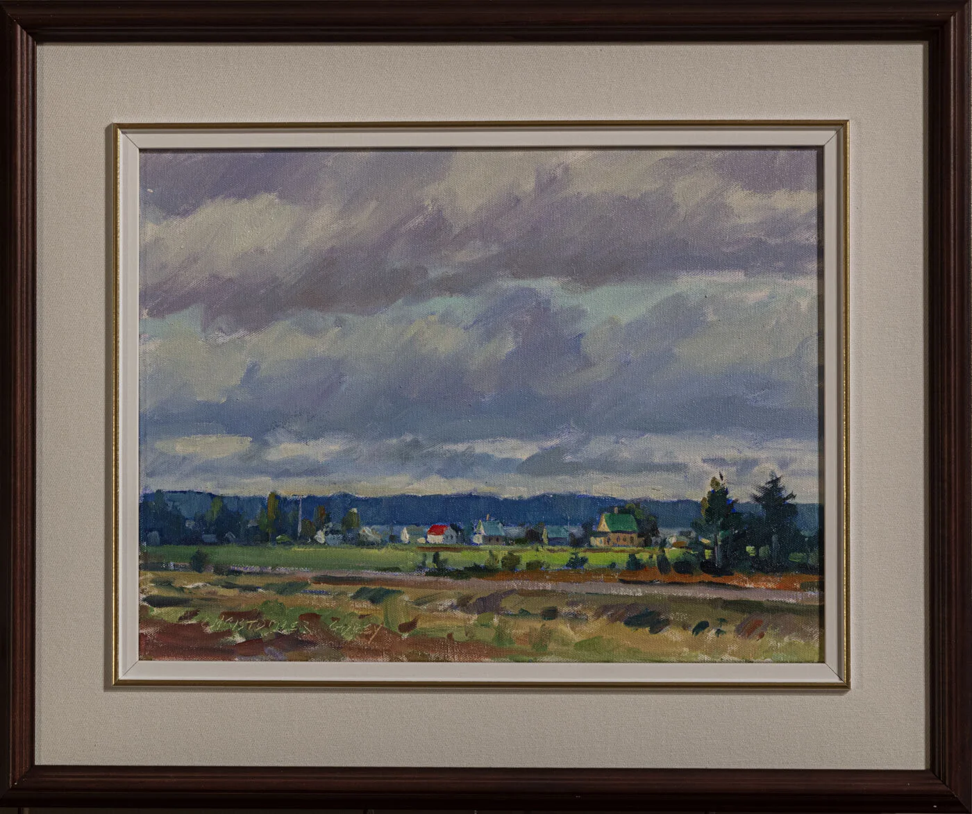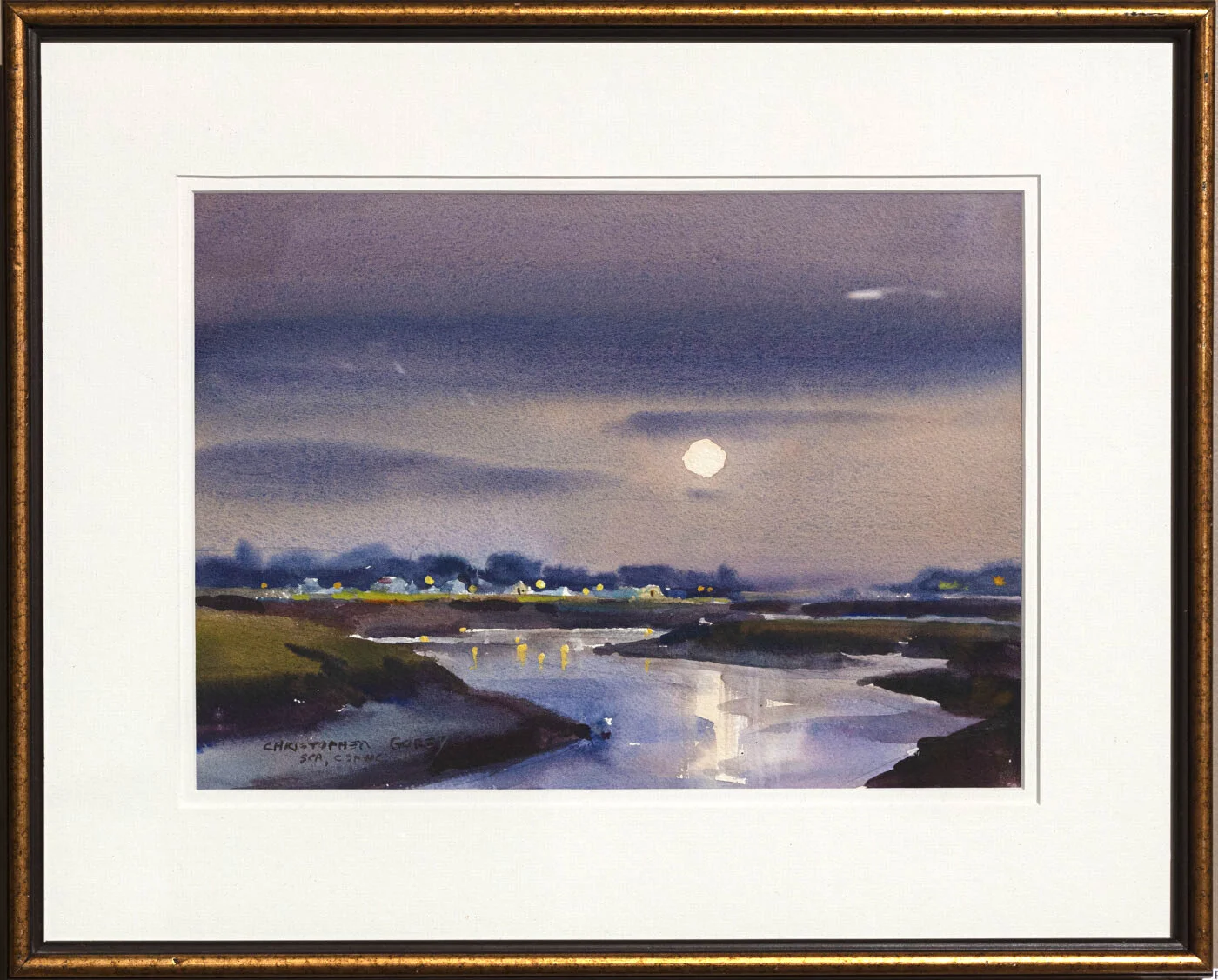 [SOLD] Christopher Gorey "Parrsboro Reflections" watercolour, 18 x 30"