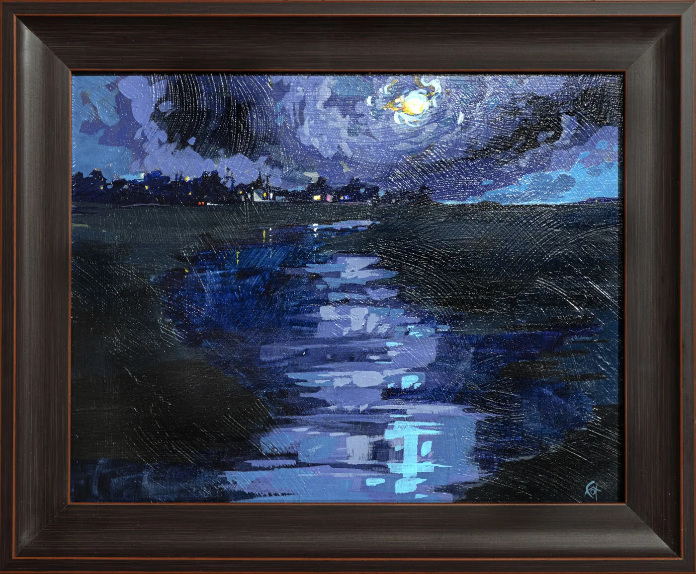[SOLD] Kate Georgallas "Moon Shadows" oil on board, 8 x 8"