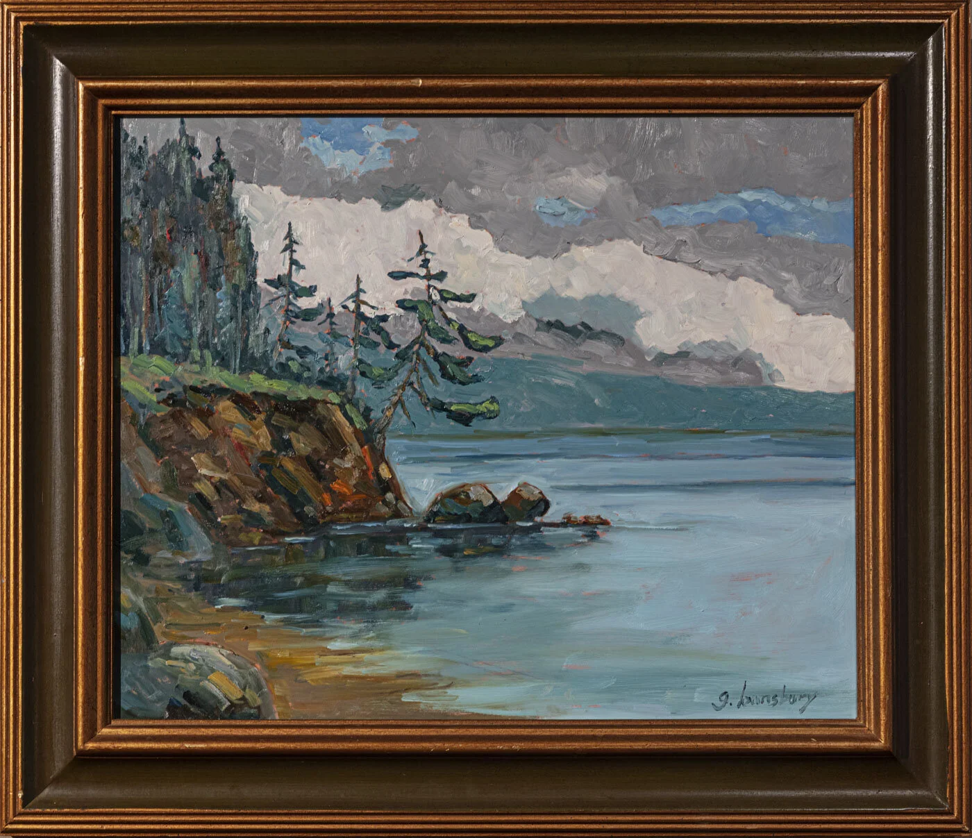 Grant Lounsbury "View from the Shore" oil on masonite, 15 x 28"