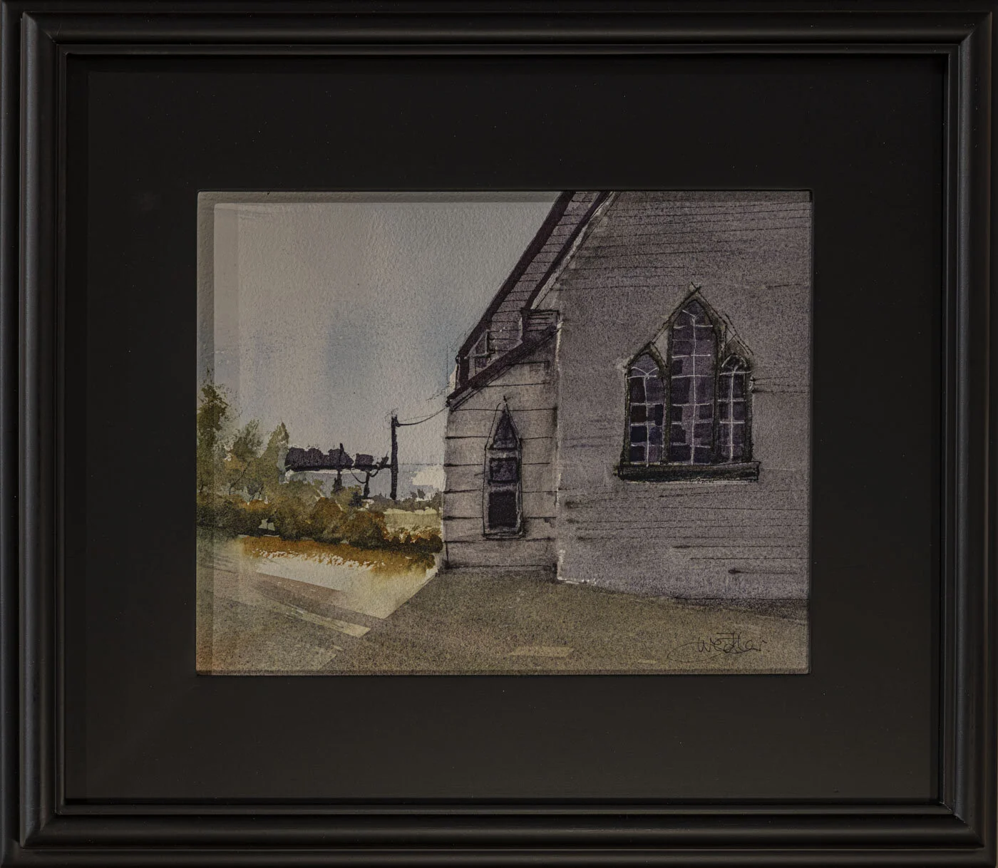 Edward Wedler "Church Overlooking Cape Split" watercolour, 15 1/2 x 14"